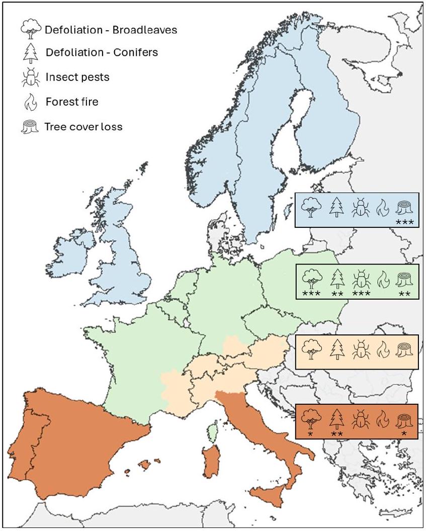 - The geographical variability in the distribution of forest damage needs to be integrated into Europe-wide strategies to effectively mitigate future impacts.