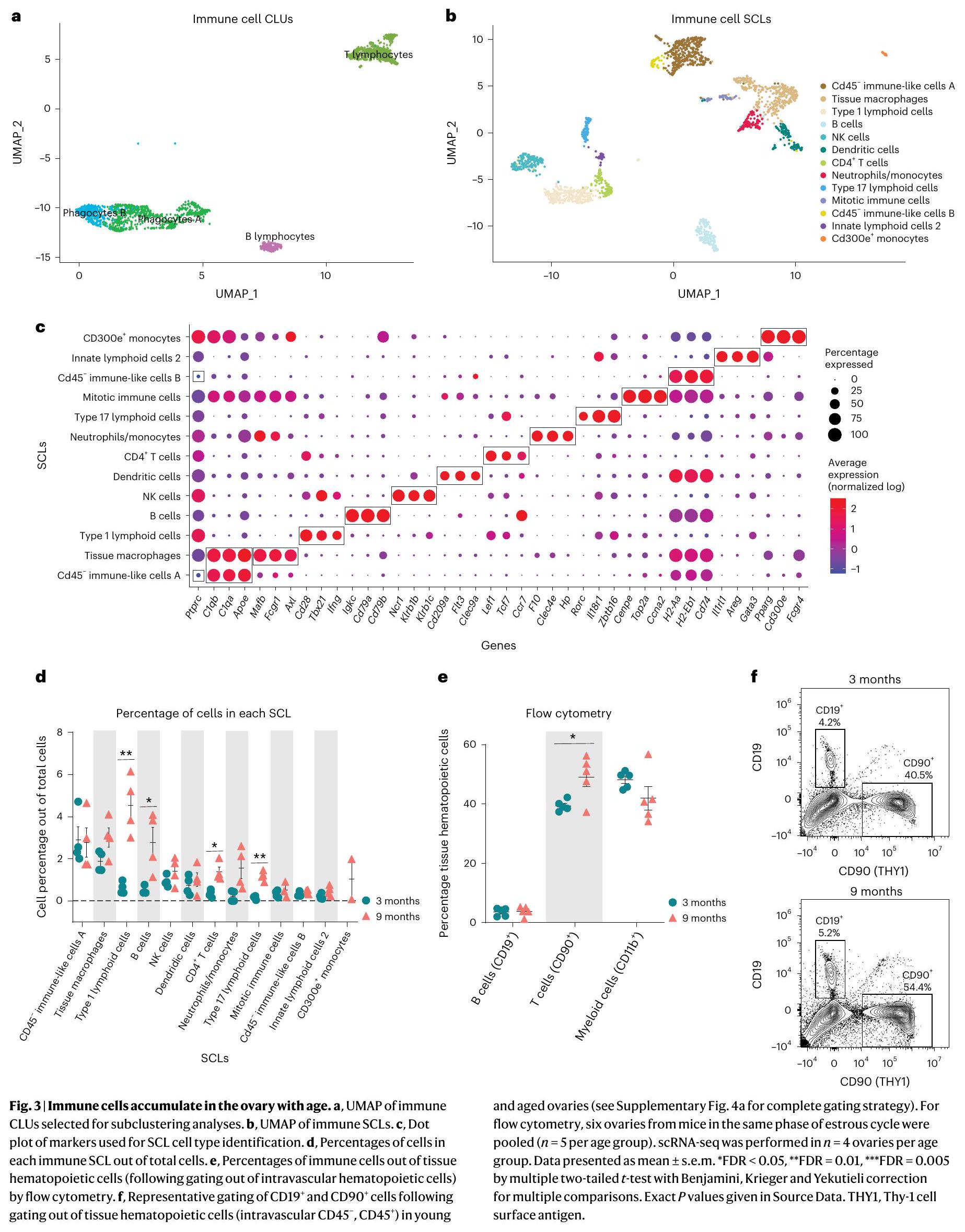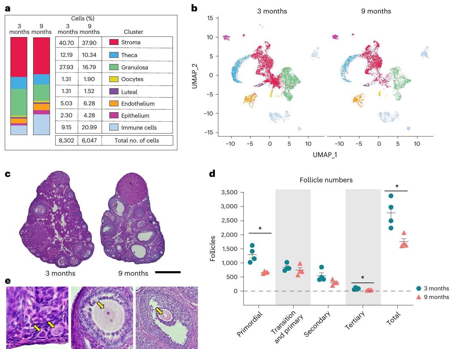 scRNA-seq لمبيض الفأر البالغ عبر الأعمار الإنجابية
