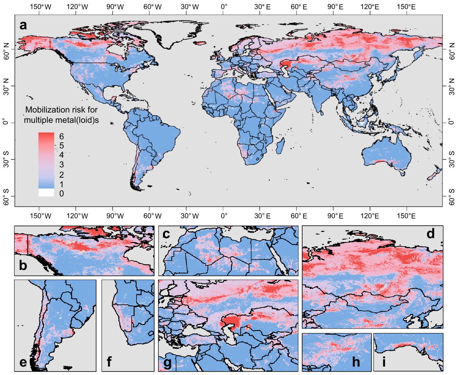 metal(loid)s identified with medium-to-high mobilization risk in baseline scenarios for a specific site; b-i Zoomed-in sections of the typical mobilization risk hotspots. Source data are provided as a Source Data file.