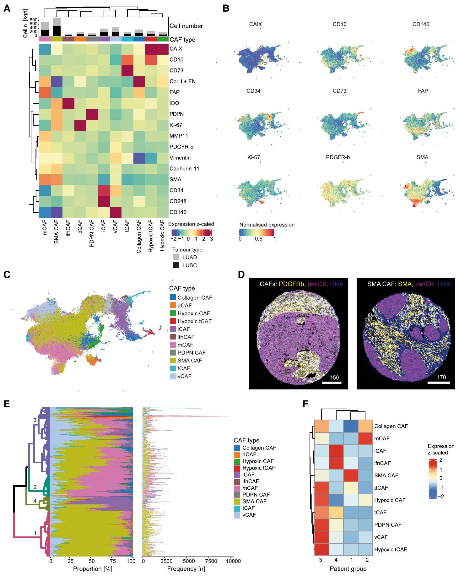 segmentation but excluded from subsequent clustering analyses. Cadherin-6 was excluded from all analyses as it did not show any specific staining pattern. All antibodies were selected based on our previous study of CAF heterogeneity including a scRNA-seq dataset of NSCLC.