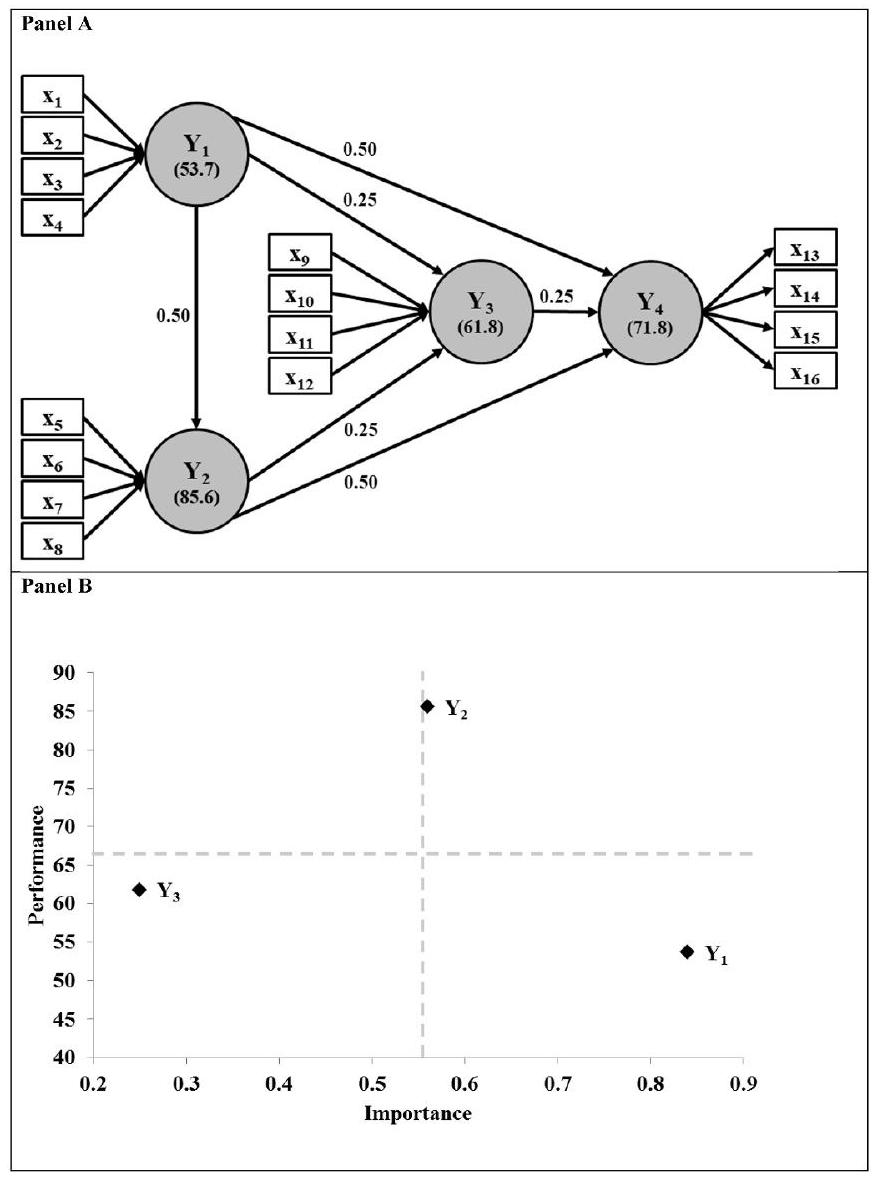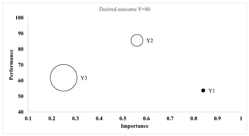 تم استخدام IPMA أيضًا في سياق نمذجة المعادلات الهيكلية باستخدام المربعات الصغرى الجزئية (PLS-SEM)، وهي طريقة متعددة المتغيرات لتقدير العلاقات المعقدة بين البنى ومؤشراتها (هاير وآخرون، 2022، الفصل 1؛ لوهمولر، 1989، الفصل 2؛ وولد، 1982). في العقود الماضية، تطور استخدام PLS-SEM في أبحاث التسويق (غوينتر وآخرون، 2023؛ هاير وآخرون، 2012؛ سارستيدت وآخرون، 2022)، بما في ذلك البيع بالتجزئة وخدمات المستهلك (على سبيل المثال، كاي وآخرون، 2023؛ هيو-تي-الكوسر وهيرنانديز-روخاس، 2022؛ رودريغيز وآخرون، 2020). يسهل PLS-SEM إجراء IPMA، بسبب الطريقة التي تقدر بها الطريقة معلمات النموذج. على وجه التحديد، يقوم PLS-SEM بحساب مركبات المتغيرات المؤشرية لتمثيل البنى في نموذج إحصائي. استخدم الباحثون هذه الدرجات المركبة كتمثيلات لأداء البنى وقارنوها مع التأثيرات الكلية التي تمارسها البنى على هدف معين (على سبيل المثال، كريستنسن وآخرون، 2000؛ رينجل وسارستيدت، 2016؛ ستروكينز وآخرون، 2017). يستند IPMA الأساسي إلى متوسط درجات الأداء والأهمية ومن ثم