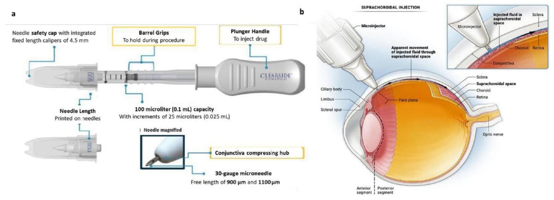 خيارًا جذابًا لتوصيل الأدوية المستهدفة إلى الشبكية. باختصار، بينما يمكن أن تشكل الحواجز مثل المشيمية، وحاجز BRB، و RPE تحديات لتوصيل الأدوية إلى الشبكية عبر طريق SCS، فإن الخصائص الفريدة لهذا الطريق، بما في ذلك تقليل فقدان الدواء في الدورة الدموية الجهازية وزيادة مستويات الدواء في موقع الهدف، تجعلها نهجًا واعدًا لتوصيل الأدوية بكفاءة إلى الشبكية (الشكل 10).