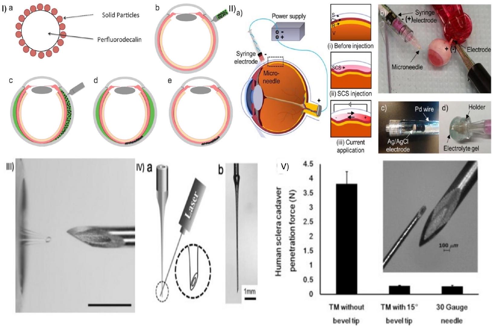 قوة HMNs. يعتبر قطر الثقب وزاوية التحدب وتصميم المحول عوامل حاسمة تؤثر بشكل كبير على نجاح اختراق HMNs للأنسجة العينية مع تقليل التدخل. علاوة على ذلك، فإن القوة المطبقة أثناء الحقن هي معيار أساسي لضمان الحد الأدنى من تلف الأنسجة. تتناول هذه الفقرة الخصائص الأساسية لـ HMNs لتوصيل الأدوية العينية بشكل minimally invasive.