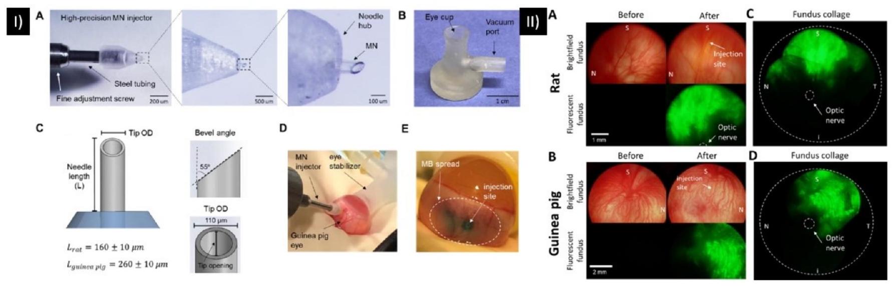 hub diameter and a is the length of the needle, as described in Fig. 4. This study developed a robust MN delivery technique for SCS injection in rats and guinea pigs by controlling and optimizing MN dimensions, tissue-hub interactions, and eye stabilization during injection. Targeted delivery was accomplished with a high success rate in rats and guinea pigs using a simple, one-step injection method [88].