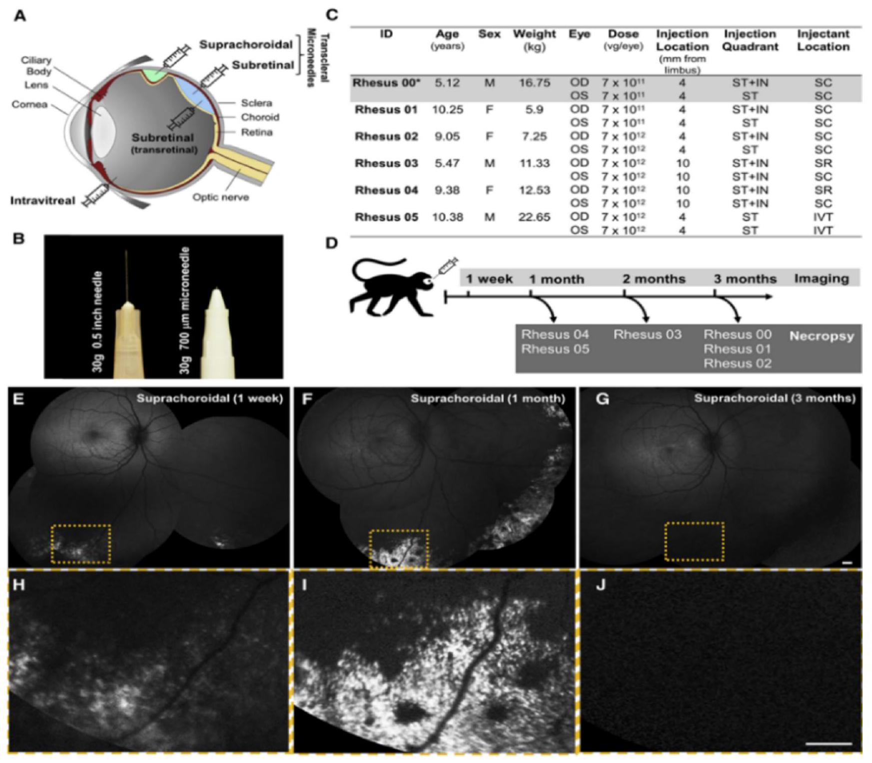 SCS | Transscleral/subretinal delivery of adeno-associated virus (AAV8) vectors | [129] |