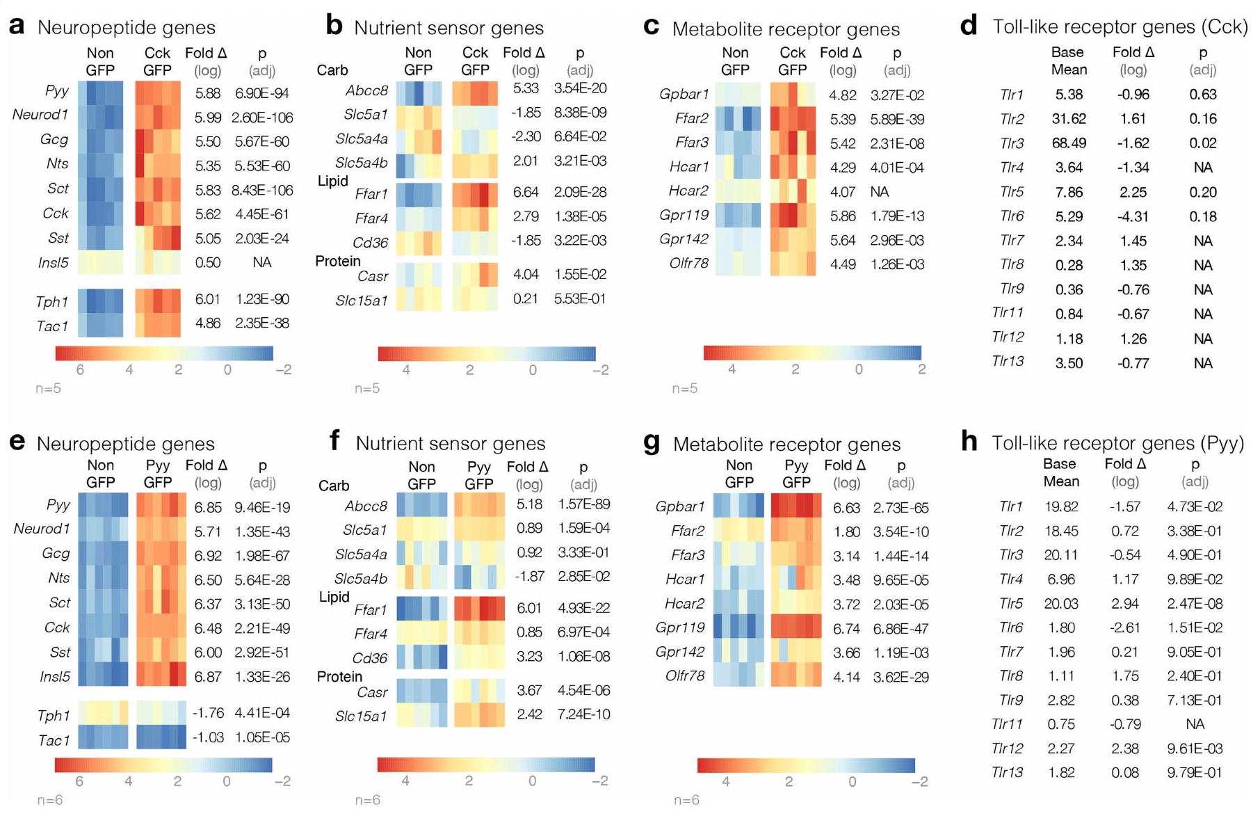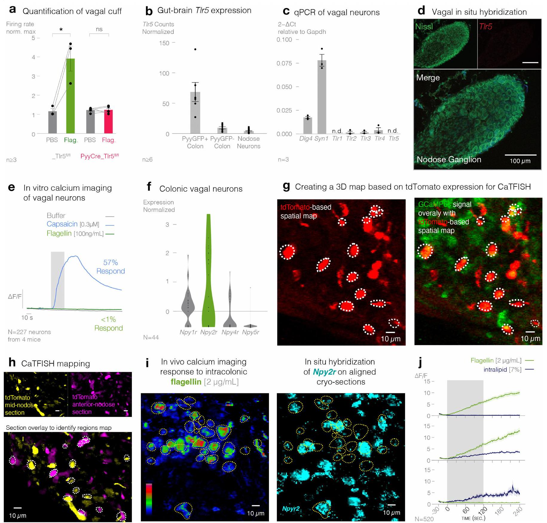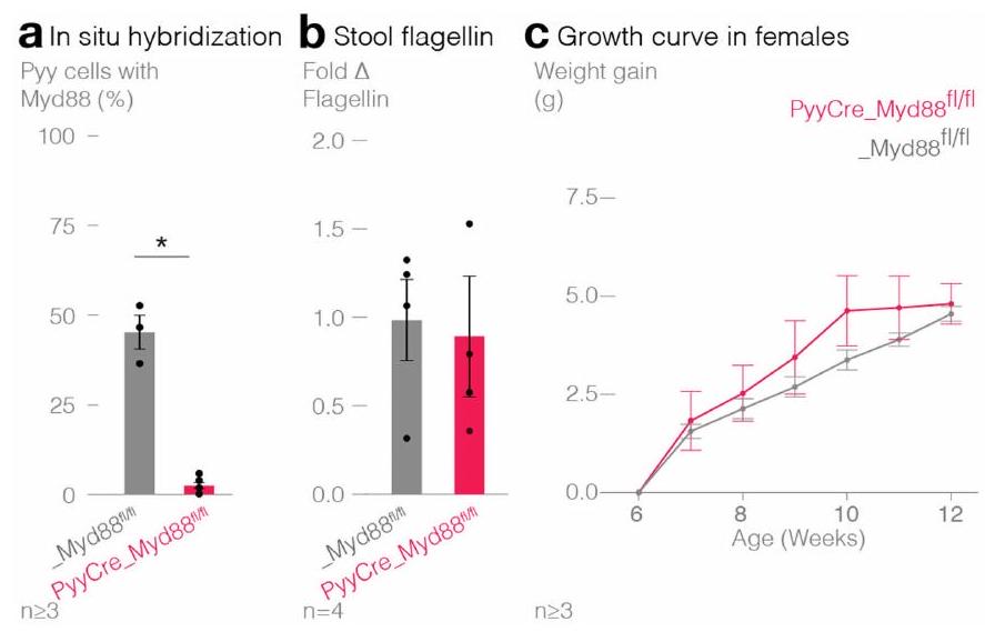 تم تأكيد التعبير القوي لـ Tlr5 في الخلايا المعلّمة بـ PYY باستخدام تقنية الهجين في الموقع. بشكل عام، زادت التوطين المشترك بشكل ملحوظ من