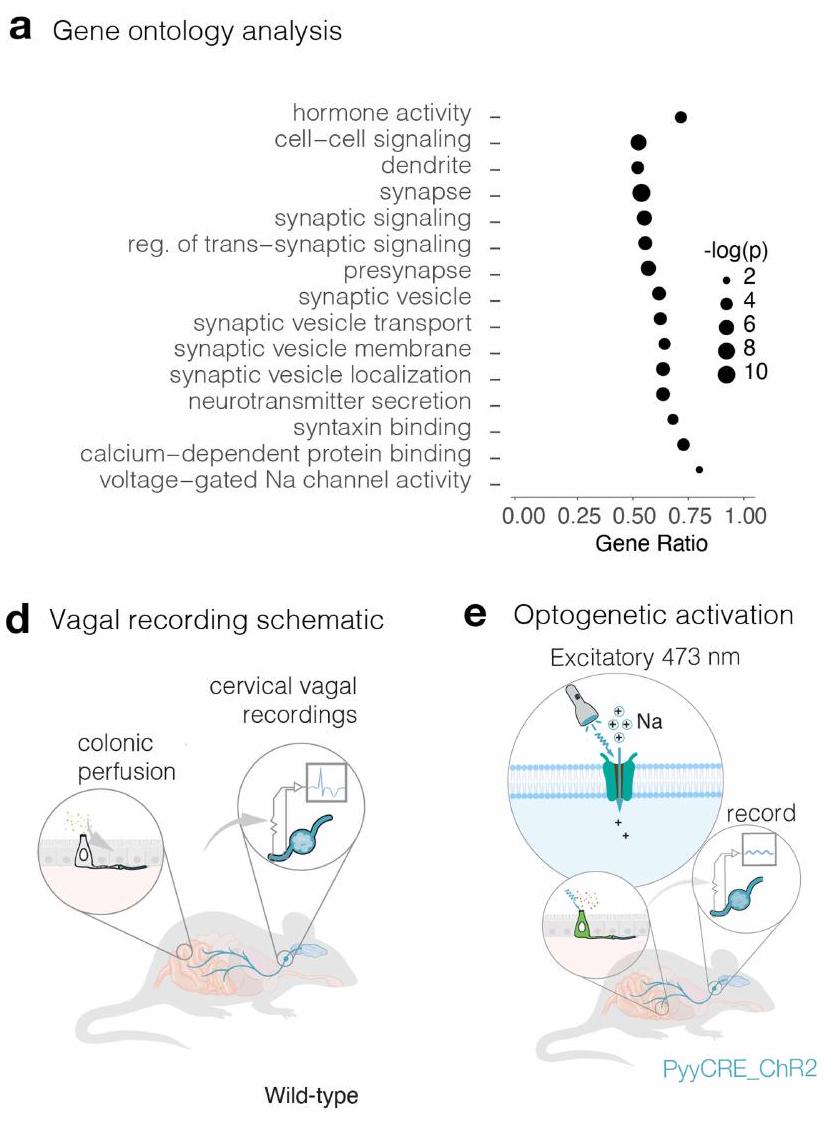 مقارنة بالخلايا الظهارية المجاورة، فإن الخلايا المعلّمة بـ PYY غنية بشكل ملحوظ في الجينات التي تشفر بروتينات متورطة في الإشارات المشبكية، وتشكيل المشابك، والنقل العصبي.
