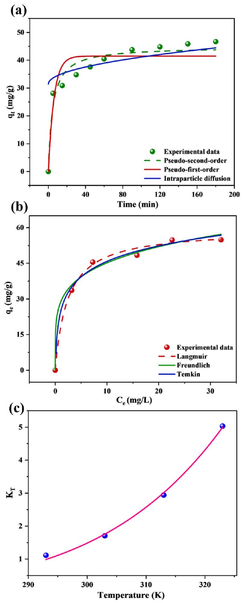 The Temkin model, which infers a linear reduction in the heat of adsorption with increasing surface coverage caused by adsorbent-adsorbate interactions, offers an additional perspective on the adsorption process. Although its