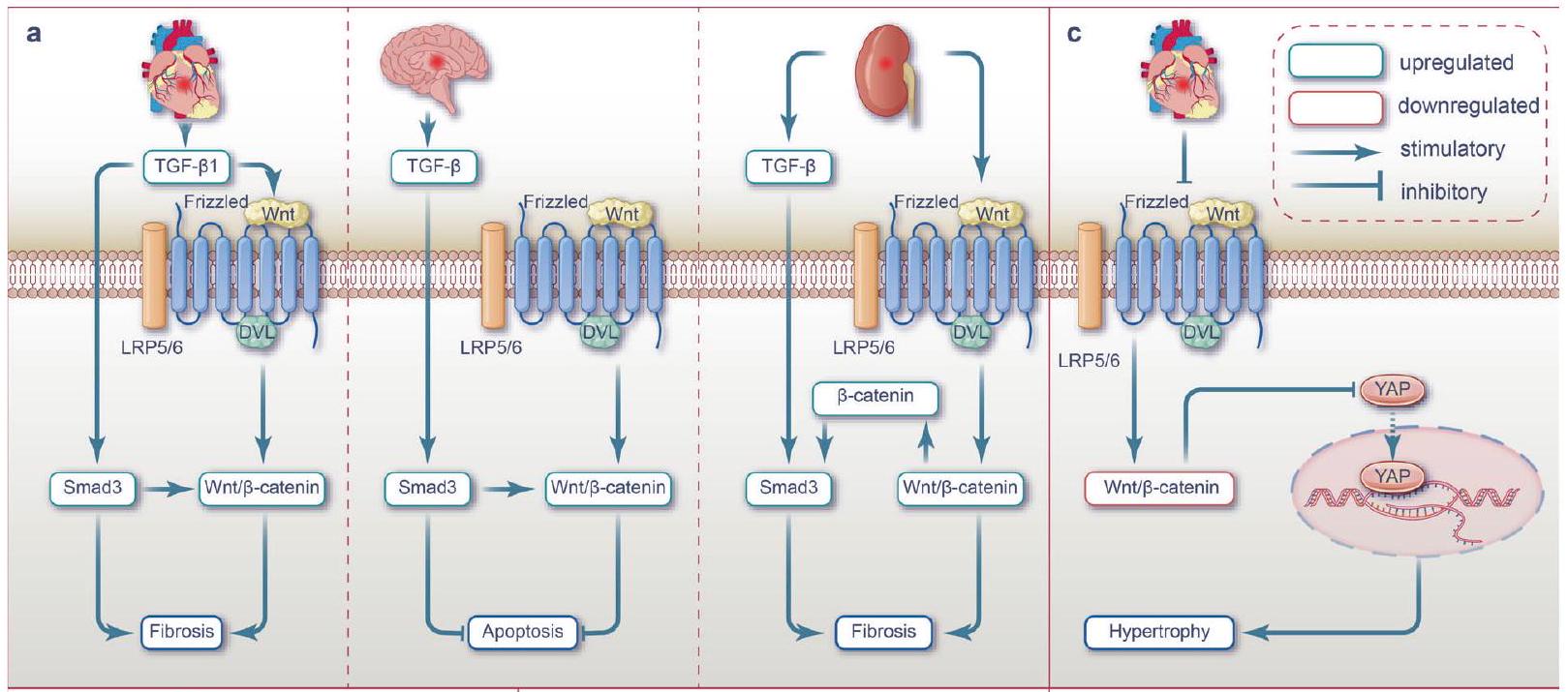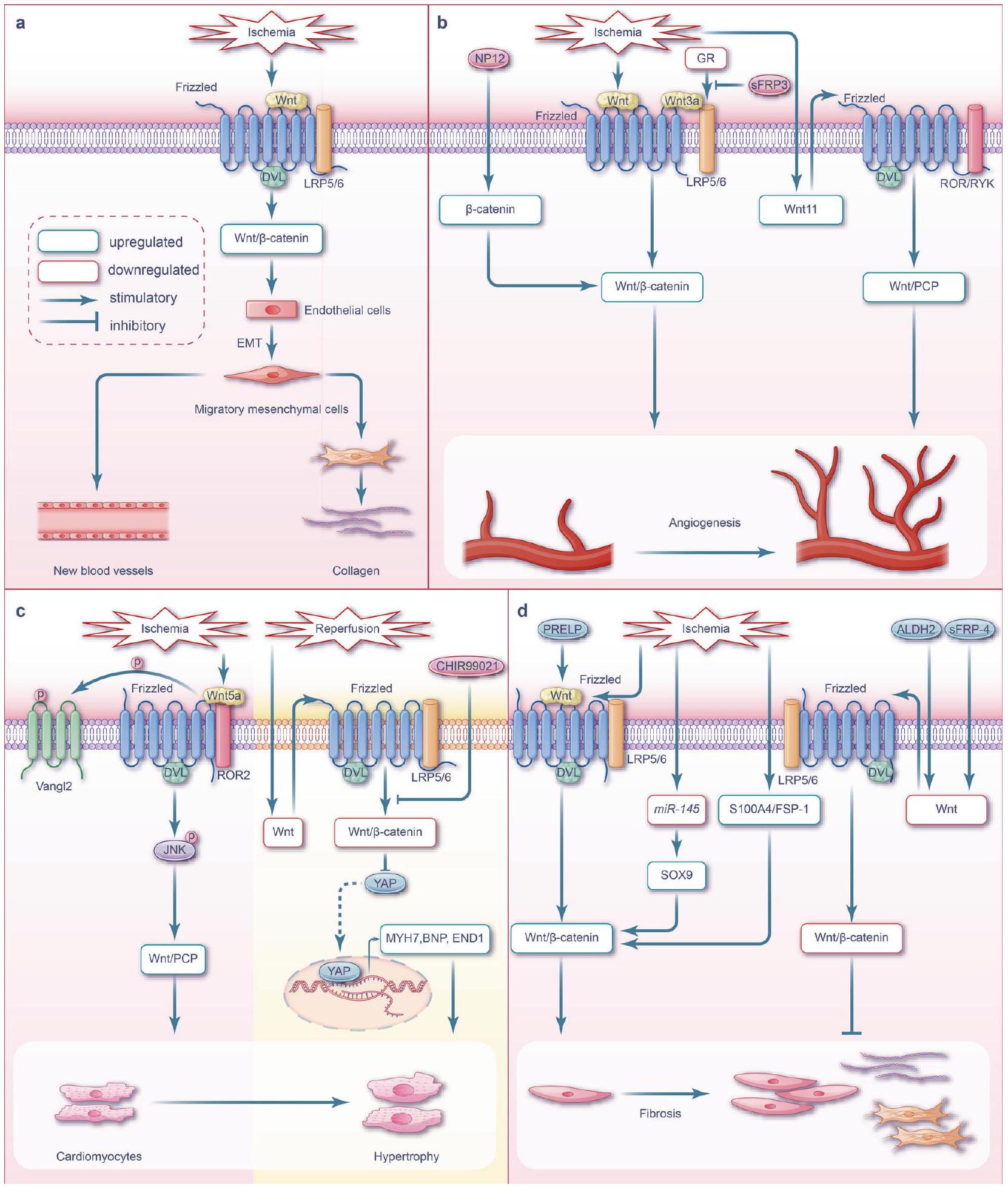 إصابة عضلة القلب الإقفارية، مما يؤدي إلى بدء إعادة تشكيل المصفوفة خارج الخلوية المفرطة والتليف. ومن المثير للاهتمام أن مسار Wnt/