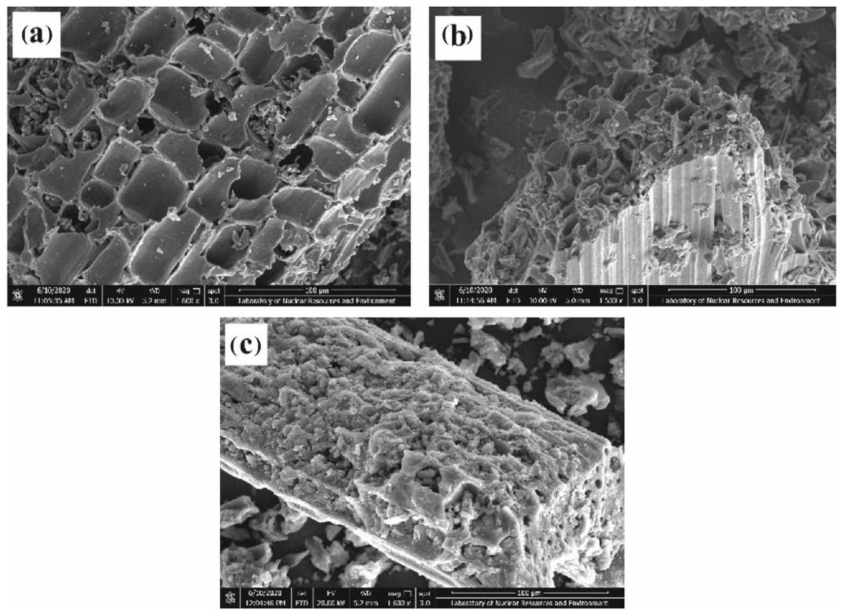 charge distribution, enhancing its ability to interact with uranium. Moreover, biological methods may include the use of microorganisms to modify the biochar’s surface properties, further increasing its functionality and specificity towards uranium (Qi et al. 2022). These modifications expand the biochar’s adsorption capacity, ion exchange ability, and interaction with uranium, thus contributing to the observed improvement in remediation (Yin et al. 2022). It was discovered that the addition of phosphorus-modified bamboo biochar (PBC) crosslinked with magnesium-aluminium layered doublehydroxide (LDH) composite (“PBC@LDH”) resulted in a 54% reduction in the uranium leaching efficiency (Lyu et al. 2021a). The PBC@LDH composite exhibited strong affinity for uranium, effectively minimising uranium leaching and safeguarding groundwater quality. The scanning electron microscopy images before and after biochar modification are shown in Fig. 3. We have observed that most of the stomates on the surface of the unmodified (Fig. 3a) biochar were blocked by its flaky structure,