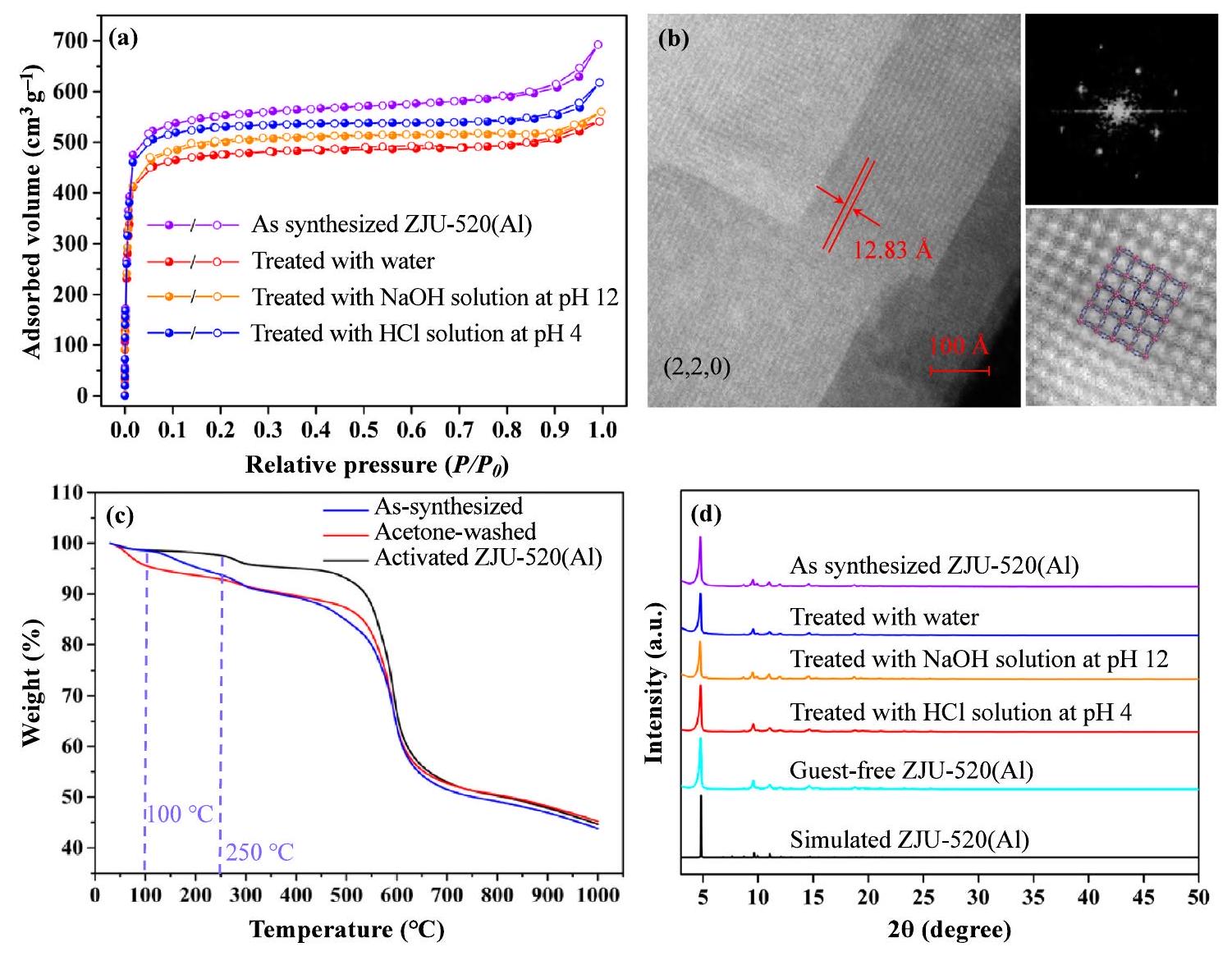 . Activated ZJU-520(Al) samples are washed with DMF and acetone for three times, respectively, and heated at