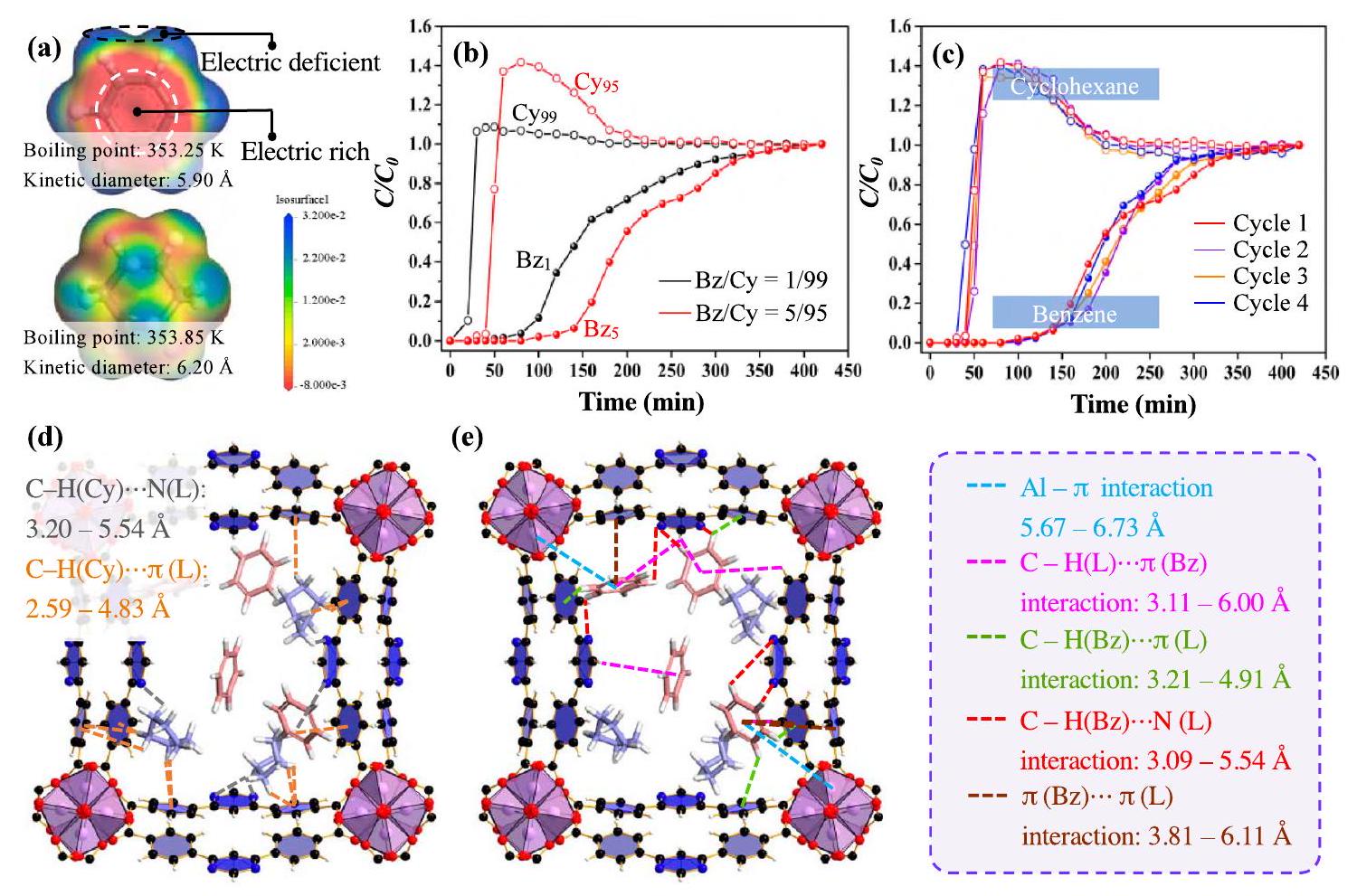 Å (Fig. 6e and Supplementary Fig. 30e, in brown lines). Therefore, ZJU-520(Al) exhibits more multiple interactions with benzene than that with cyclohexane, resulting in the excellent Bz/Cy separation of ZJU-520(Al), even at trace benzene concentration.