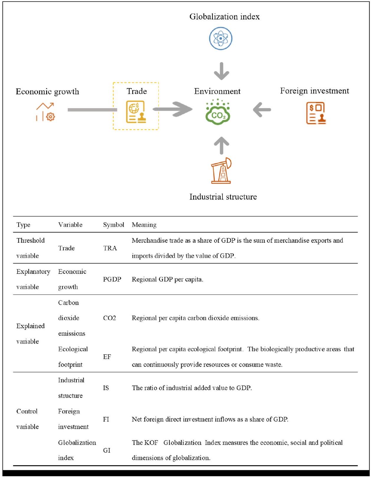 intricately integrates trade, economy, and the environment, making a significant contribution to existing scholarly literature. By delving into deeper layers of nonlinear relationships, it significantly enhances our understanding of the complex interplay between environmental factors and economic growth. Specifically designed for scrutinizing the impact of trade on the economyenvironment relationship through panel data analysis, this model provides theoretical insights relevant to exploring threshold effects across diverse economies. Future investigations may extend variable transformations to uncover additional nonlinear relationships among a myriad of variables.