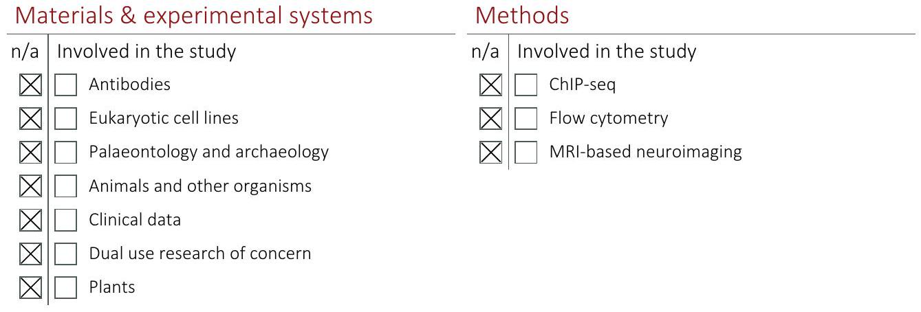 | Laboratory animals | For laboratory animals, report species, strain and age OR state that the study did not involve laboratory animals. |