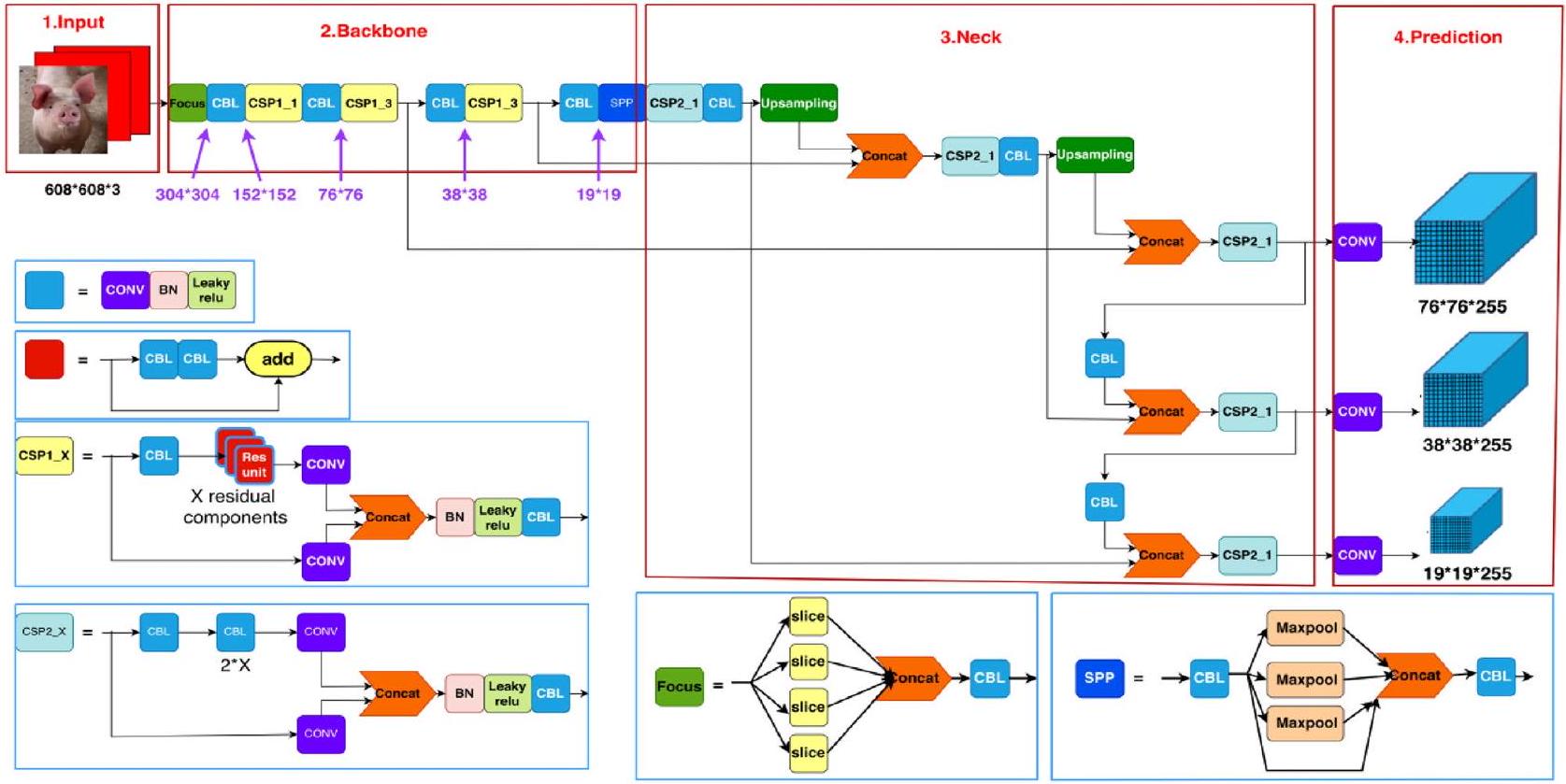 ، و x. من أجل تحسين سرعة التعرف، تم اختيار نموذج YOLOv5s الذي يتمتع بأقل عمق وعرض للشبكة كنموذج أساسي للتعرف على تعبيرات وجه الخنزير. تتكون هيكل الشبكة من أربعة أجزاء