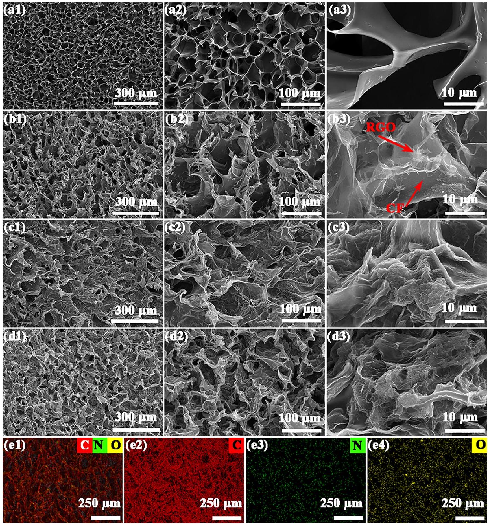 3.1 التركيب، البنية المجهرية، خصائص امتصاص EM و EMW لهياكل RGO/CFs vdWs عن طريق تنظيم محتوى GO