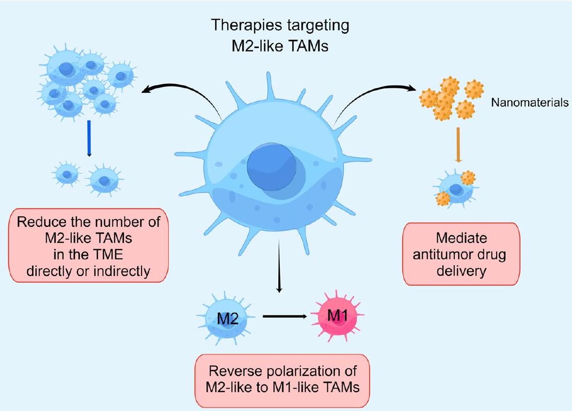 تقليل عدد TAMs الشبيهة بـ M2 في TME بشكل مباشر أو غير مباشر