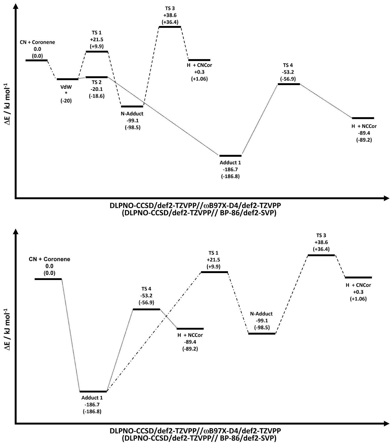 | H + Cyanocoronene | -89.15 | -89.97 | -86.33 | -89.88 | -106.47 | -89.39 | -90.31 | -86.53 | -88.90 | -103.67 |