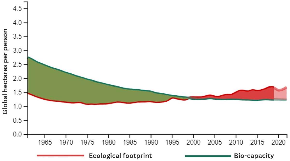 الشكل 2 اتجاه البصمة البيئية والقدرة البيولوجية في إندونيسيا. المصدر: شبكة البصمة العالمية