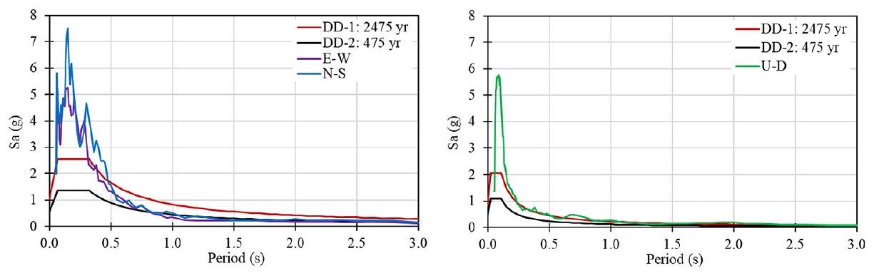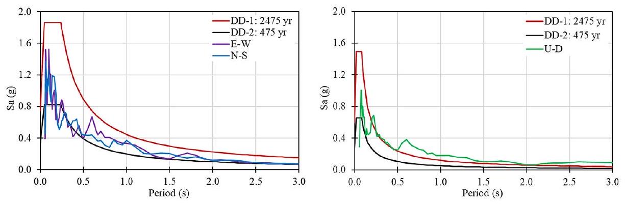 Additionally, it is determined that the earthquakes mainly affected the short-period buildings having a fundamental period of lower than 1.0 s and corresponding to low and midstory structures. Therefore, the damage increased in the region because it generally has low and mid-story building stock. Nevertheless, the buildings with large periods seemed affected only at station 4612. Moreover, the buildings with large overhangs were also severely damaged in the region because the vertical components of the recordings were very high and exceeded the design spectra.