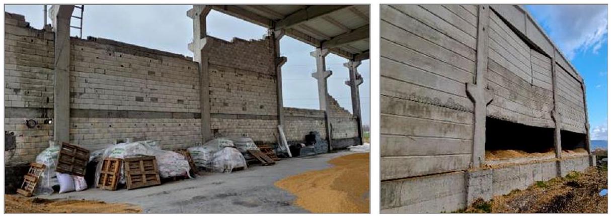Fig. 20 Examples of large-span walls exceeding the maximum unsupported wall length on the walls (left) and out-of-plane tipping damage on the precast wall panels (right)