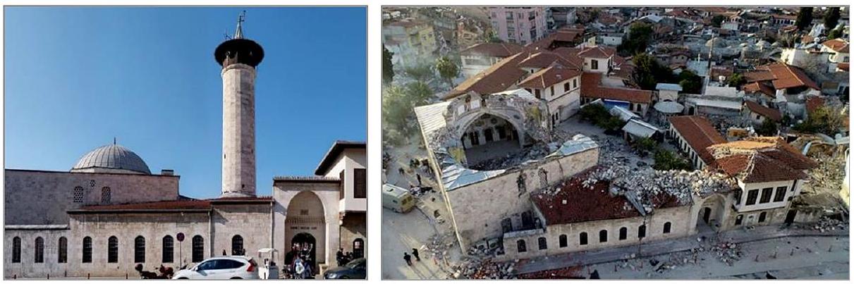 Fig. 21 Habibi Neccar Mosque, Antakya, Hatay, before (left) and after (right) the Kahramanmaraş earthquakes