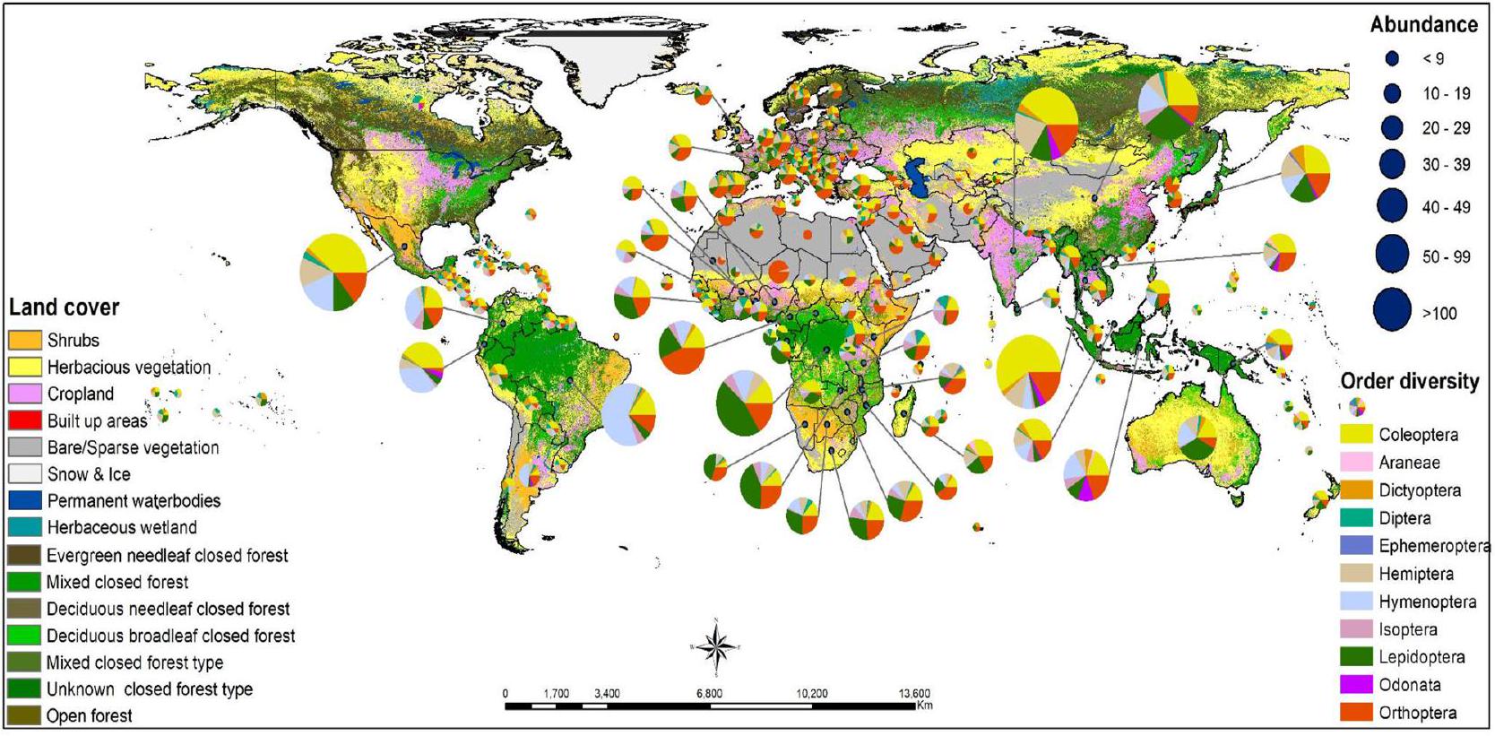 ). This inclusive approach ensures a more comprehensive representation of edible species within this category. The global land cover dataset offers valuable insights into the Earth’s land cover types and is instrumental in assessing the environmental conditions suitable for various insect species. This information was sourced from the Copernicus Land Service library (https://land.coper nicus.eu/global/products/lc). We gathered additional data for each country from reputable sources, including the Food and Agriculture Organization (FAO) (https://www.fao.org/faostat/en/#home). This supplementary data encompassed key factors such as population, income levels [measured by gross domestic product (GDP) per capita], and food and nutritional insecurity indicators. These factors are essential for contextualising the relationship between edible insects and socio-economic variables.