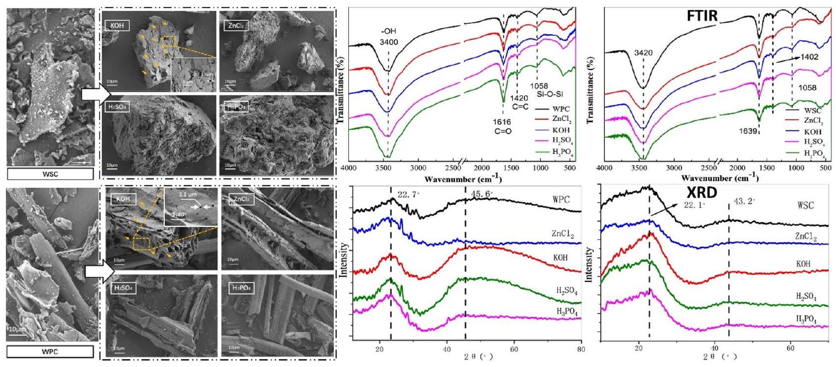 تعزيز مساحة السطح المحددة وتغيير الهيكل المسامي، وخاصة المجموعات الوظيفية على سطح الممتز المmodified.