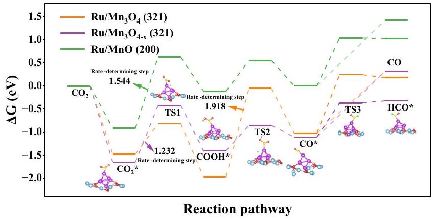 استنادًا إلى التحقيقات الطيفية والنظرية المذكورة أعلاه، فإن هناك آلية محتملة للتفاعل الضوئي الحراري الحفازالهدرجة علىتم اقتراحه. إن نوع Ru المودع فعال للغاية لـالانفصال. الاستفادة من التفاعل القوي بين الروثينيوم و، أثر تسرب الهيدروجين المدعوم من الروديوم ساعد في التطور الهيكلي لـإلى محدد جيدًاعند درجات حرارة منخفضة، يمكن أن يسهل التآزر بين طاقة الفوتون والطاقة الحرارية مزيدًا من الهيدروجنة للمواد الماصة.الجزيئات فوق الروثينيوم ومن خلال تسريع تشكيل الوسيط الرئيسي. بشكل حاسم، مقارنةً بعملية تطور CO من *CO، مفضل بشكل طاقي لتحفيز *هيدروجين الكربون نحو *هيدروكسي كربون، مما يعزز الهيدروجين اللاحق نحو المنتج النهائي.مع نشاط وانتقائية عالية.