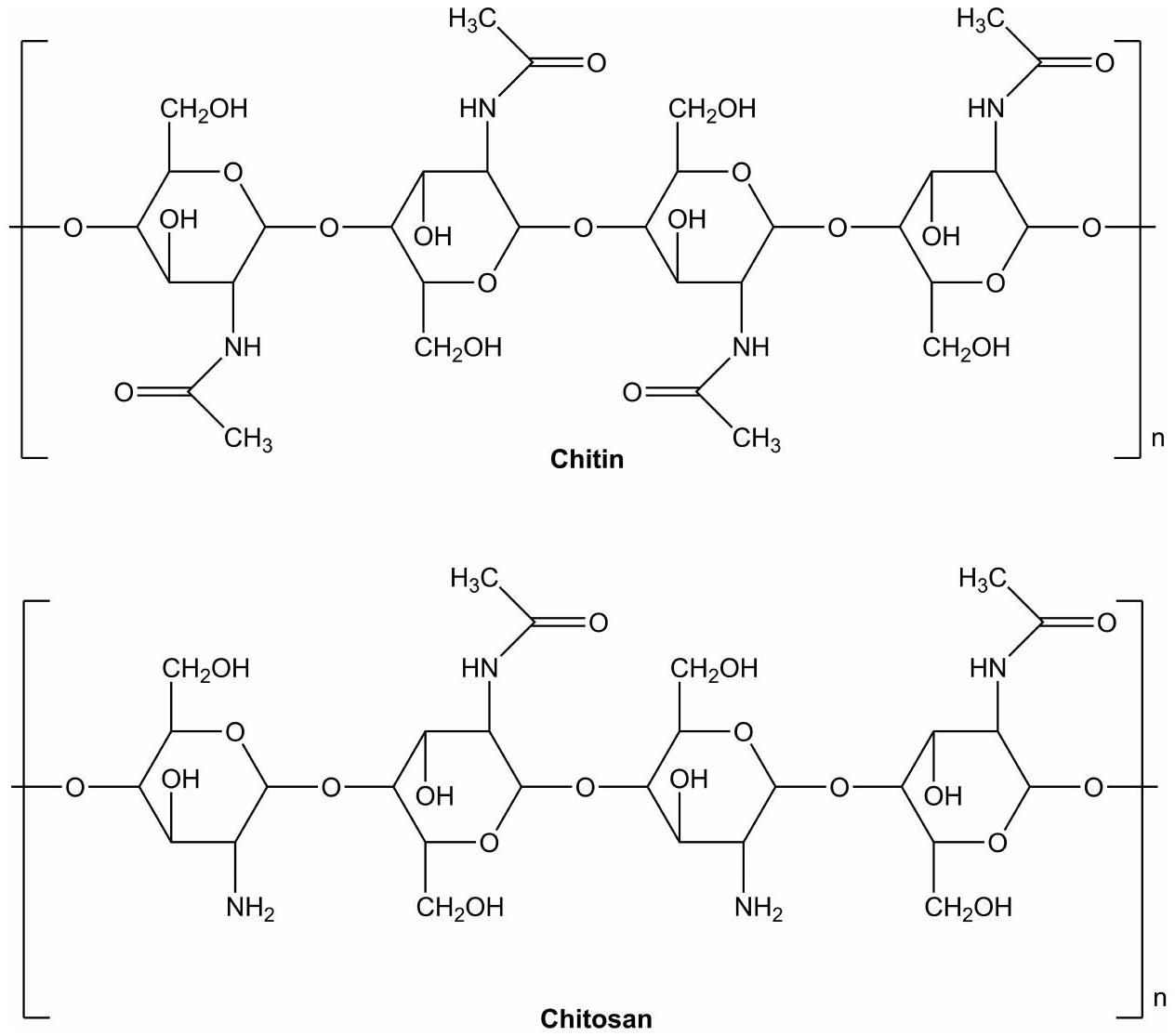 الشكل I التركيب الكيميائي للكيتين والكيتوزان.