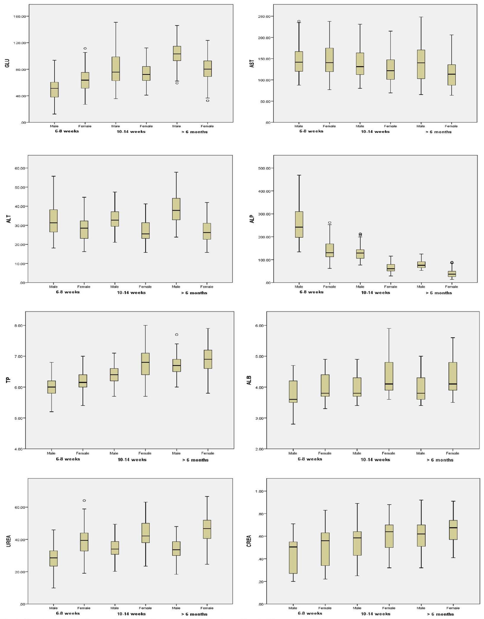 specific use [21]. The establishment of age-related historical data is required for the laboratory. Thus, we have characterized the Wistar rat data from 6 to 8 weeks to more than 6 months of age, the age group that is mostly used in experiments with male and female rats.