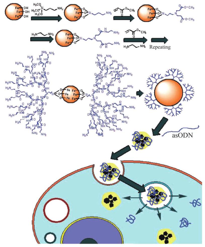 can be used in biomedical applications. Li et al. successfully prepared gold nanorods modified with tree molecules by using tree molecules to replace CTAB molecules on the surface of gold nanorods, and then connected with RGD peptide to prepare a nanoprobe that can actively target tumor vessels in vivo and kill tumor cells and significantly inhibit tumor growth under near-infrared light irradiation [45]. Animal experiments showed that this probe can make part of the local tumor tissue disappear.
