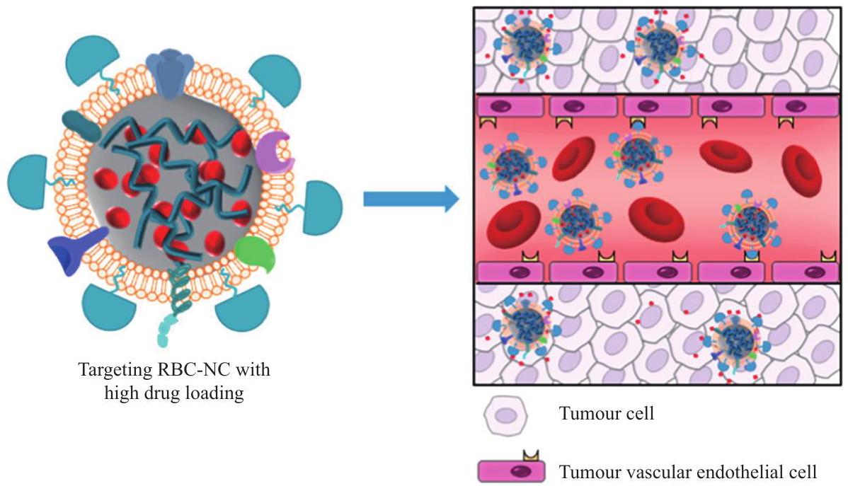 تحقيق علاج خلايا الورم في الجسم الحي من خلال الجمع مع بعض الأدوية المضادة للورم على سطحها. تعتبر صيغة الليبوسوم الشكل الدوائي الأكثر استخدامًا.