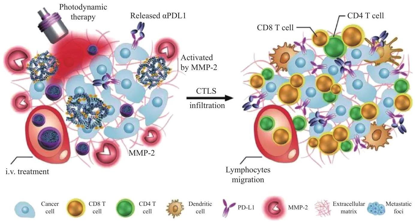enzymes, induce immunogenic cell death in tumor cells, further promote dendritic cell maturation in combination with CD47 blocker, promote antigen presentation by DC cells, and effectively inhibit the growth of primary and secondary tumors, inhibits tumor metastasis and prevents tumor relapse [88].