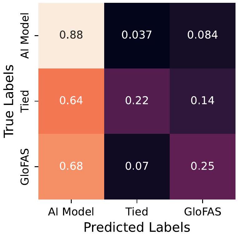 - GloFAS (in the dataset used here) does not use ECMWF IFS as input to the model. (IFS data are used by the AI model for forecasting only, and we always compare with GloFAS nowcasts.)