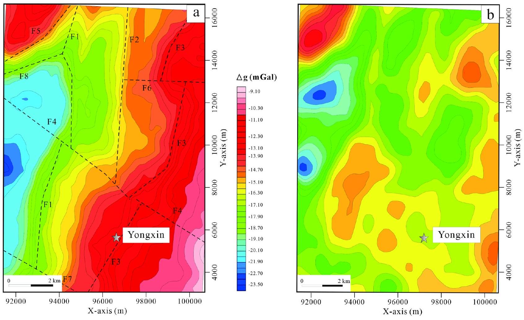 (3) الظروف الجيوفيزيائية ونموذج الاستكشاف المتكامل. تم تحديد سبعة شذوذات جاذبية من خلال المسوحات الجاذبية والمغناطيسية. تحدث هذه الشذوذات بشكل أساسي في منطقة الاتصال بين الصخور البركانية والبركانية تحت السطحية من العصر الوسيط والشيرتات الجرانوديوريتية من العصر الكربوني المتأخر، والتي يمكن ملاحظتها في مناطق التدرج أو المناطق ذات الكثافة المغناطيسية المنخفضة.