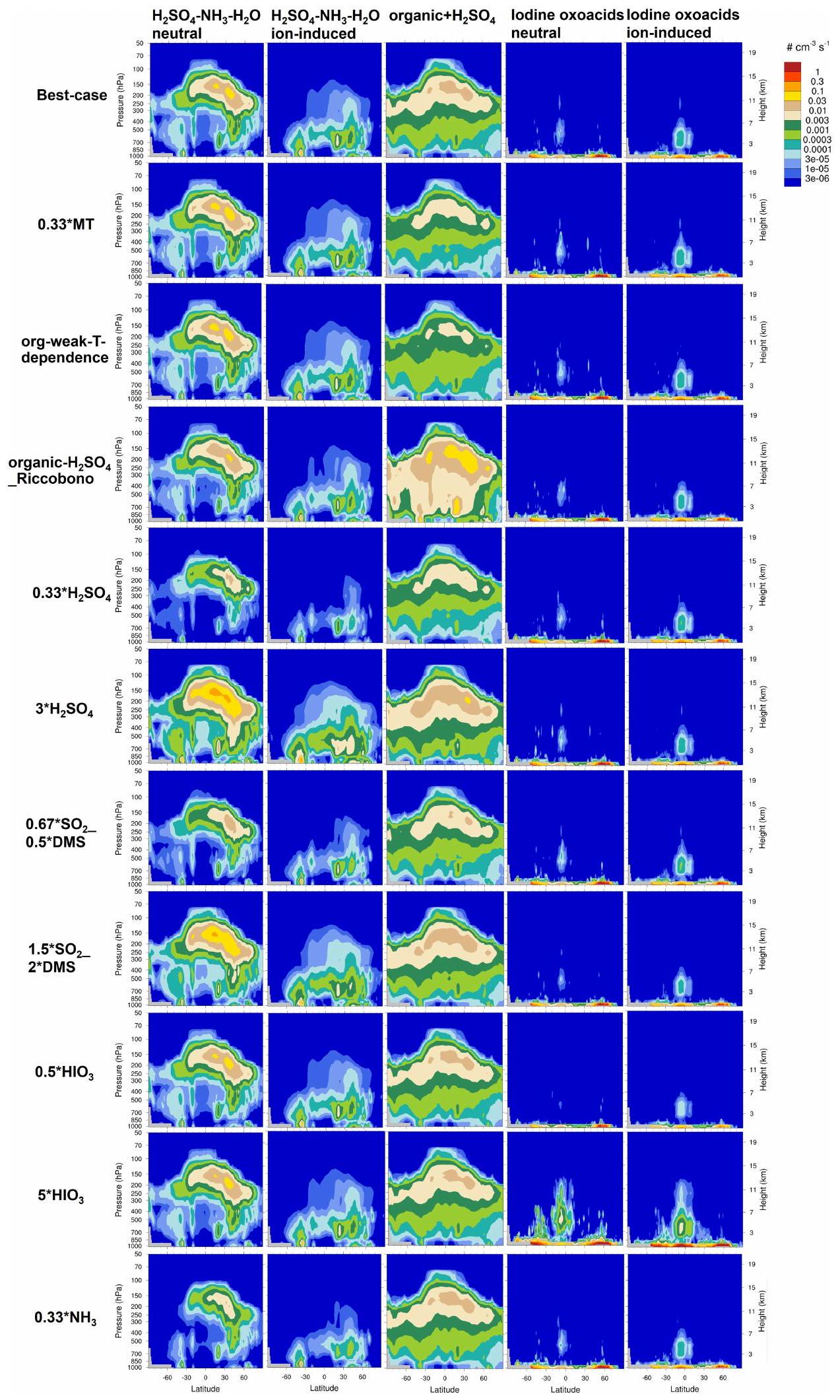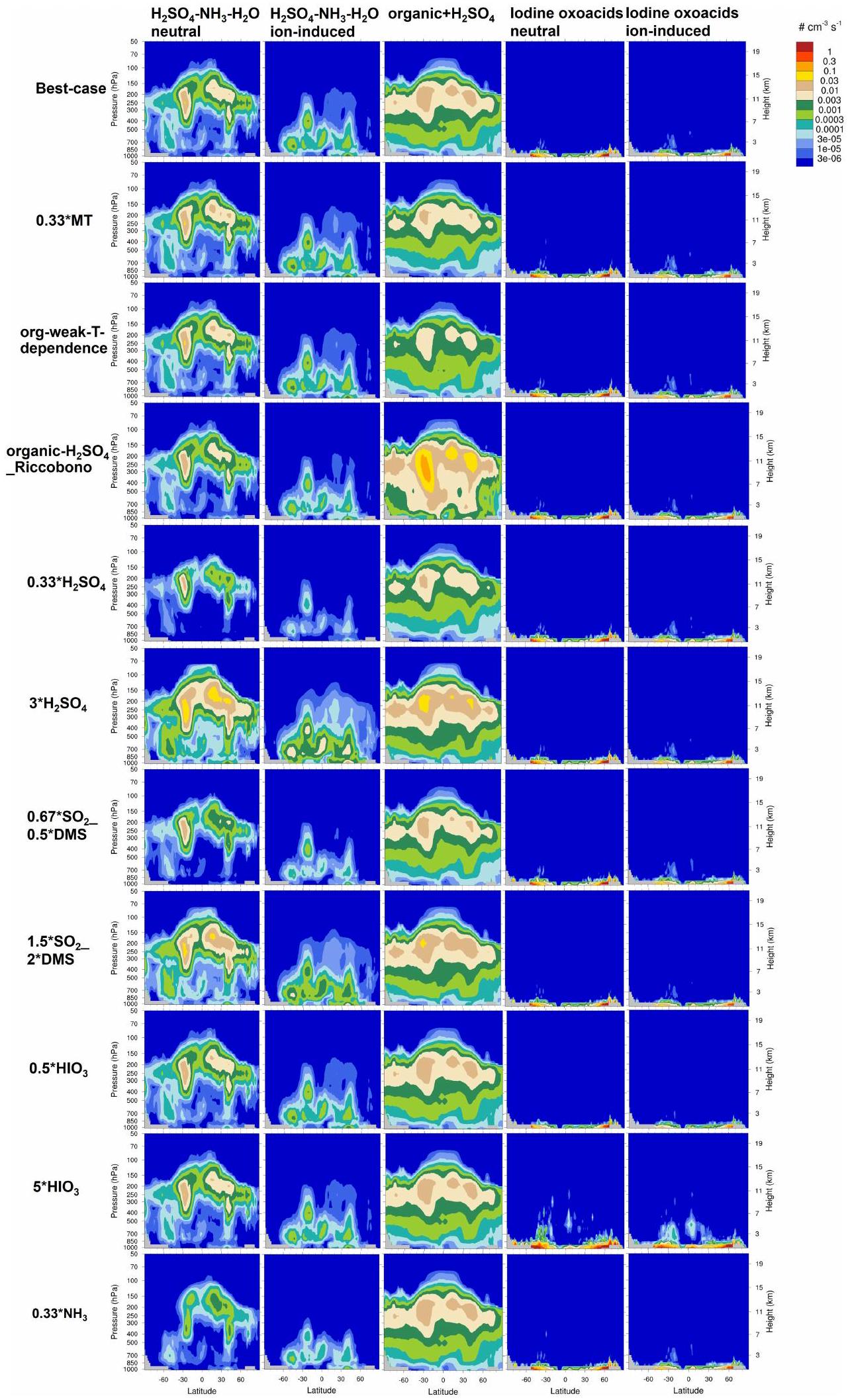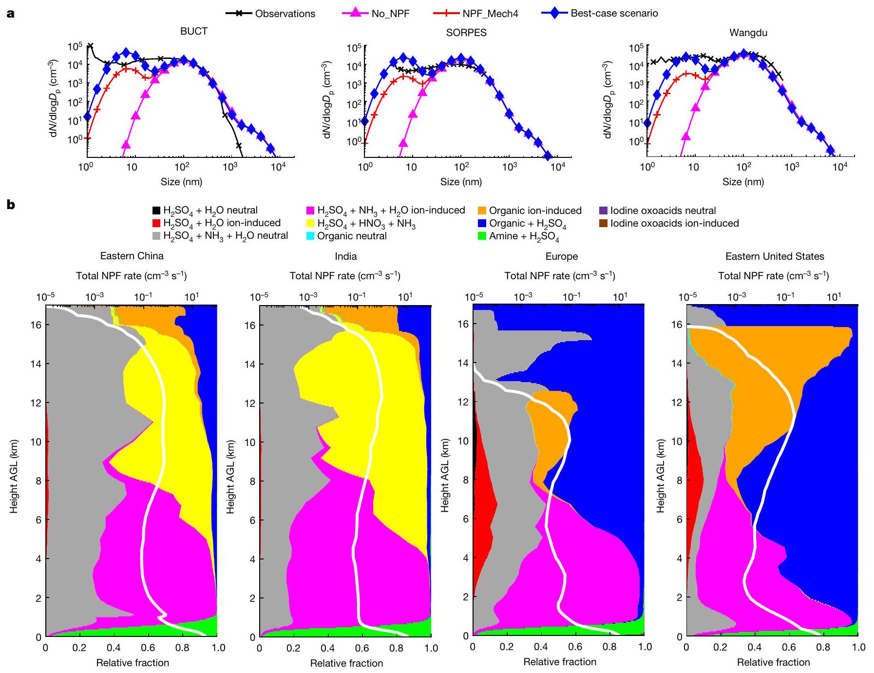 rates in two scenarios. a, Best-case simulation including 11 nucleation mechanisms. b, A sensitivity simulation that includes only four traditional
