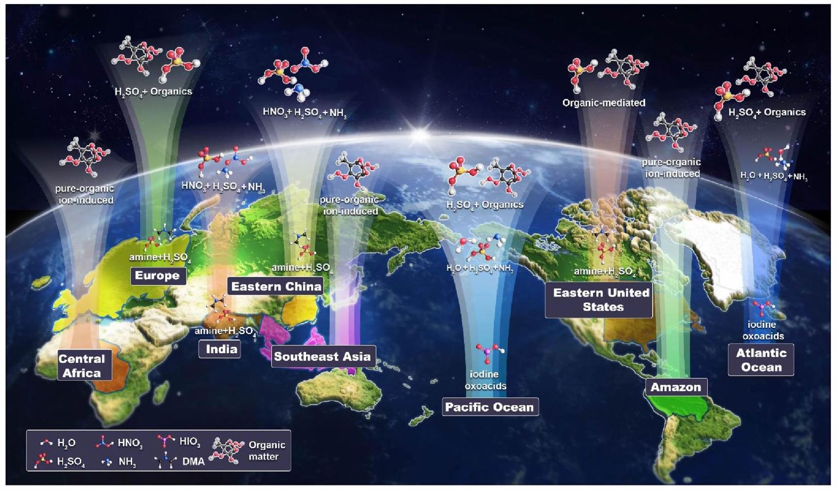نماذج الغلاف الجوي – أدوات لا غنى عنها لفهم الآليات وتأثيرات تكوين الجسيمات الجديدة على المستويات العالمية والإقليمية – تفتقر إلى القدرة على تمثيل العديد من العمليات المهمة بشكل حاسم. تعتمد معظم النماذج العالمية المستخدمة على عمليات تكوين الجسيمات الثنائية والثلاثية التقليدية التي تشمل حمض الكبريتيك.