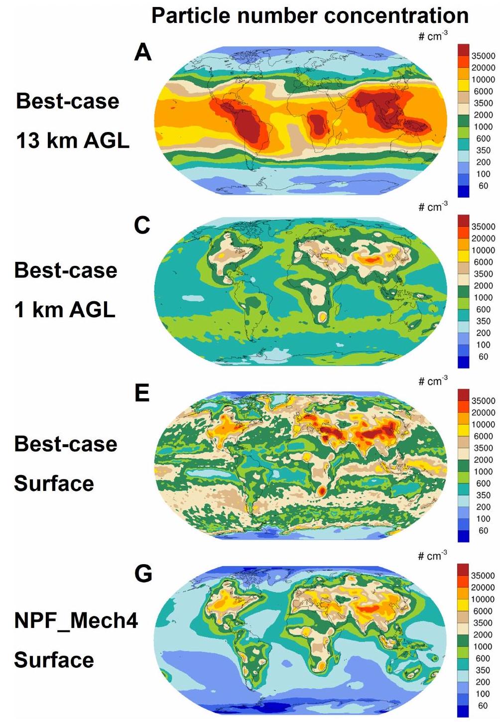 140. Yu, F. et al. Spatial distributions of particle number concentrations in the global troposphere: simulations, observations, and implications for nucleation mechanisms. J. Geophys. Res. Atmos. 115, D17205 (2010).