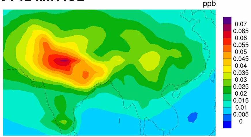 الطبقة الجوية فوق شرق الصين والهند، في حين أن العضوي-
