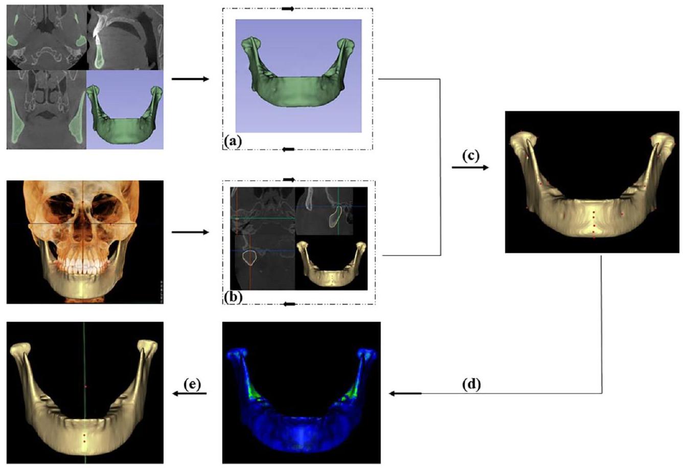 تُعبر المعالم التشريحية ثلاثية الأبعاد عن الخصائص الشكلية للفك السفلي وهي أساس التحليل ثلاثي الأبعاد للفك السفلي. يعتمد تحديد المعالم يدويًا على خبرة الأطباء السريرية وهو أمر شاق [24،25]. تم تطبيق خوارزمية You-Only Look-Once النسخة 3 (YOLOv3) على 1028 صورة شعاعية لتحديد 80 معلمًا شعاعيًا تلقائيًا بمتوسط خطأ يدوي للمعالم قدره