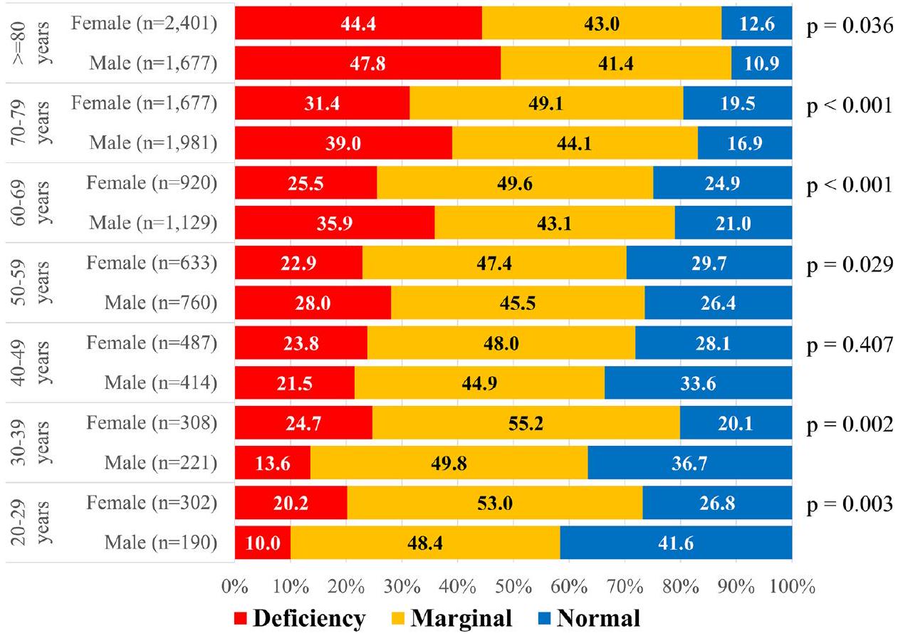 <25 | ٣٧٥٠ | 1950 (52.0) | 1307 (34.9) | 493 (13.1) | 1.443 | (1.249, 1.669) | <. 001 |