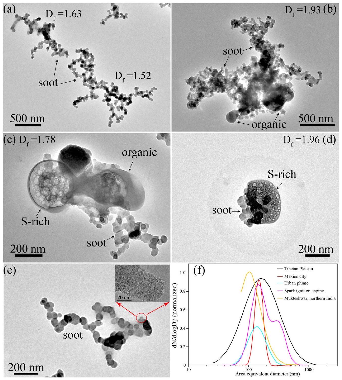 assumed that the type of combustion source soot particles exerts discernible impacts on soot particles’ fractal morphology. Recent studies have underscored the differences in morphological parameters of freshly emitted soot particles originating from different combustion sources, in particular for finer and coarser sizes of soot particles