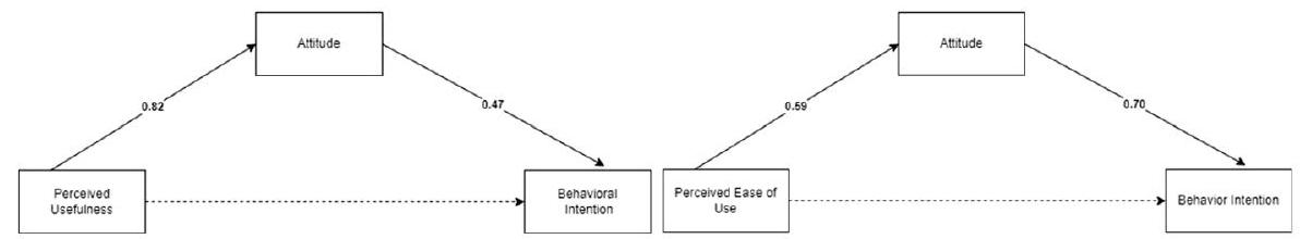 with GenAI. In contrast, perceived usefulness (PU) demonstrates a strong influence on behavioral intentions to use GenAI, both directly and indirectly through attitudes.