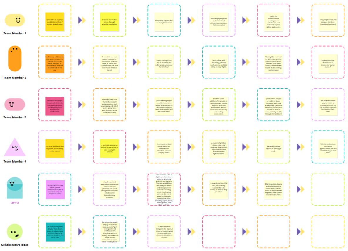 sticky notes on the board. We modified the original Brainwriting template offered by Conceptboard to reflect this new framework for Brainwriting with LLM for the enhancement of ideas.