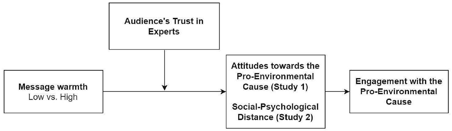 H2a. The audience’s attitude towards the pro-environmental cause acts as a mediator between message warmth and engagement with the cause, especially if people trust experts less.