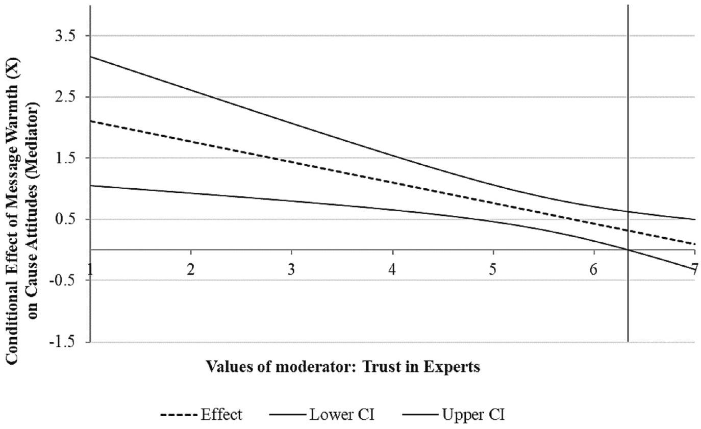 causes promoted by the VI. On the other hand, individuals who have high trust in experts are likely to give more weight and preference to objective and verifiable information (Lupia et al., 1998; Merkley & Loewen, 2021; Winterich et al., 2012), thus weakening this relationship.