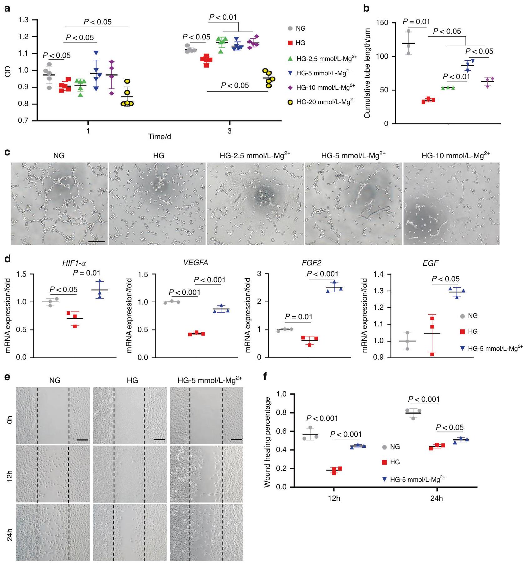 HUVECs were seeded in a 96-well plate at a density of 5000 cells per well. Then NG medium, HG medium, or HG medium containing