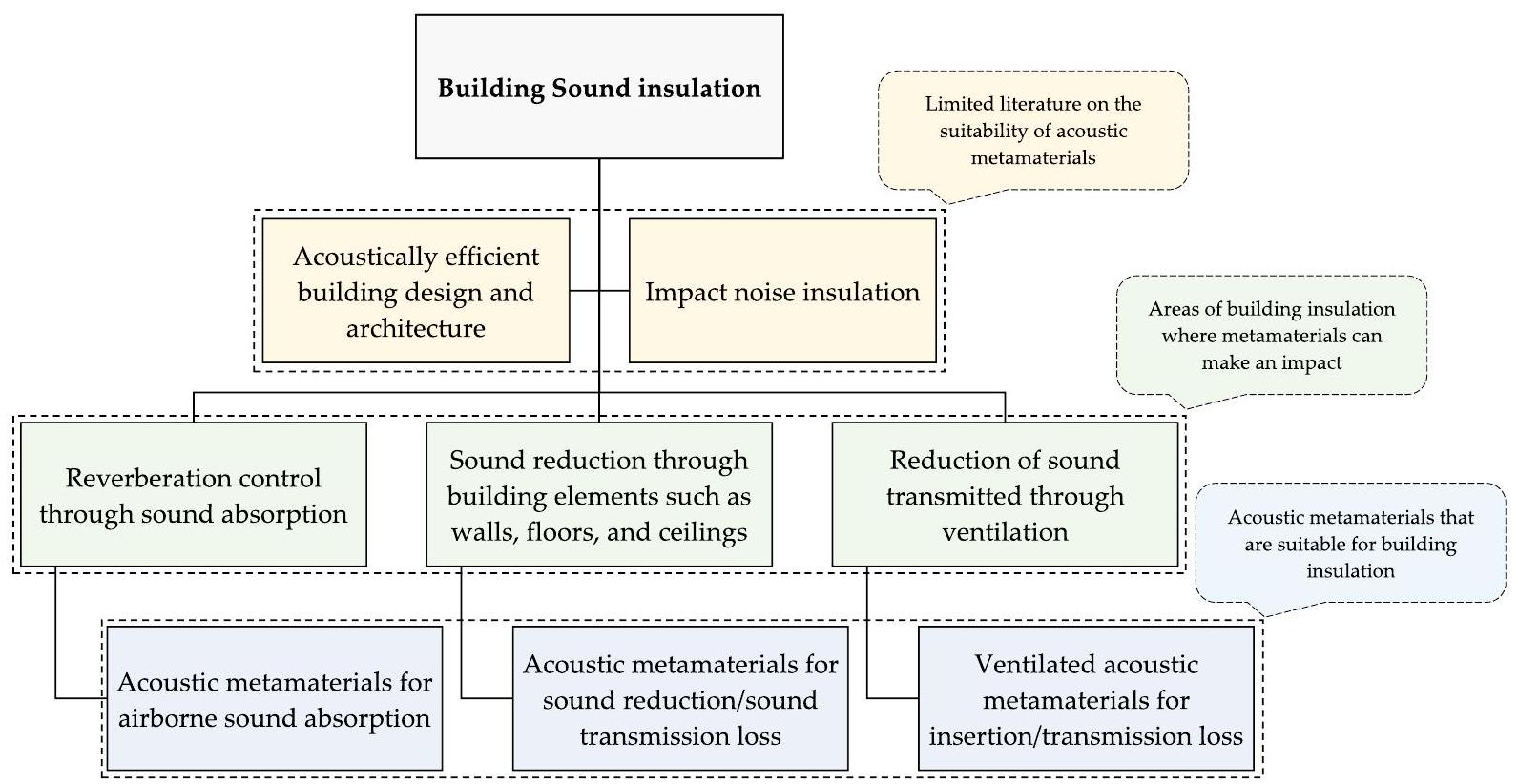 مع الأخذ في الاعتبار نوع جدران المباني والنوافذ والتهوية المعالجة. ومع ذلك، من أجل التنفيذ العملي على نطاق واسع للمواد الميتا الصوتية لعزل المباني، هناك حاجة إلى تطوير مستمر لهياكل خفيفة الوزن قادرة على تحمل الأحمال والتي تتمتع بقوة ودوام ملحوظين [93].