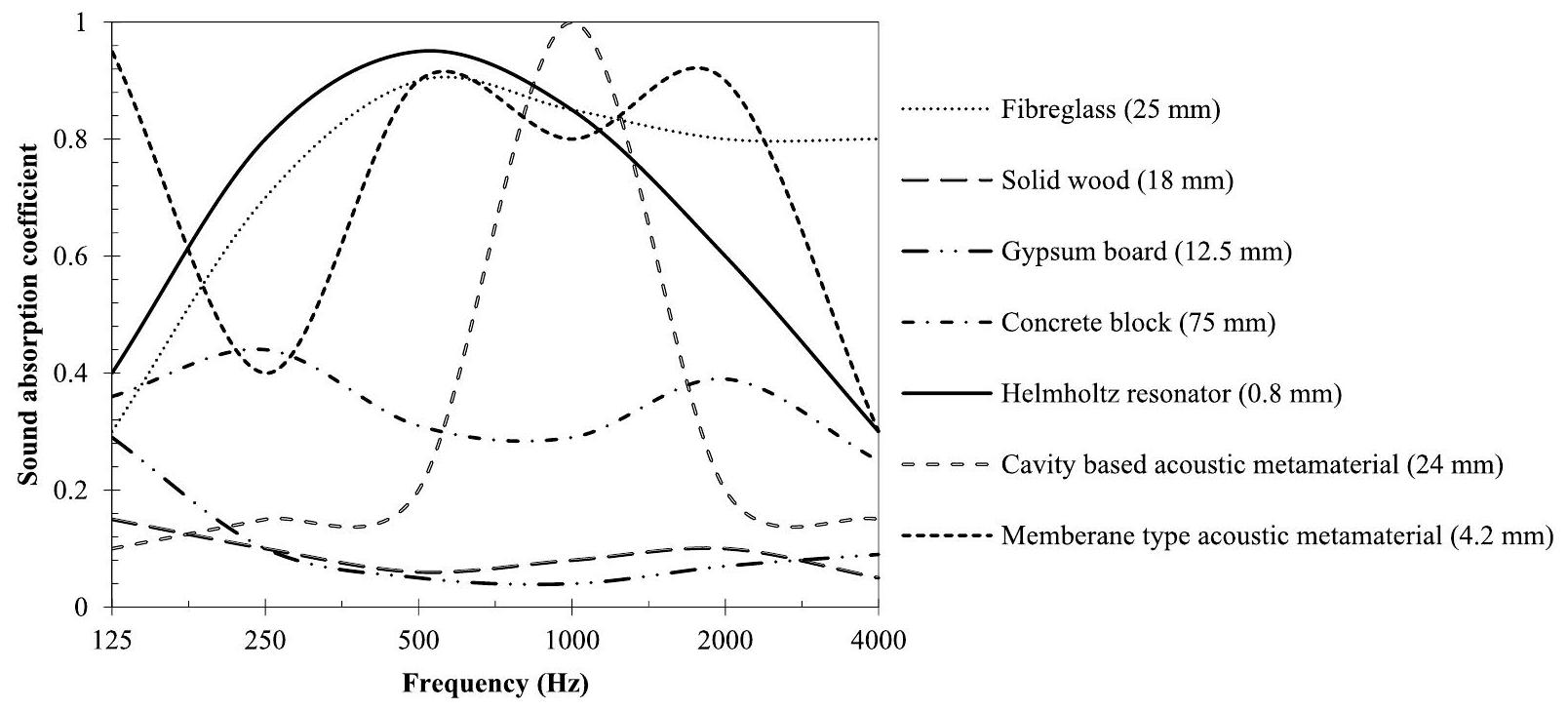 Acoustic metamaterials that offer high frequency dependent sound absorption suitable for application in building acoustics [5].